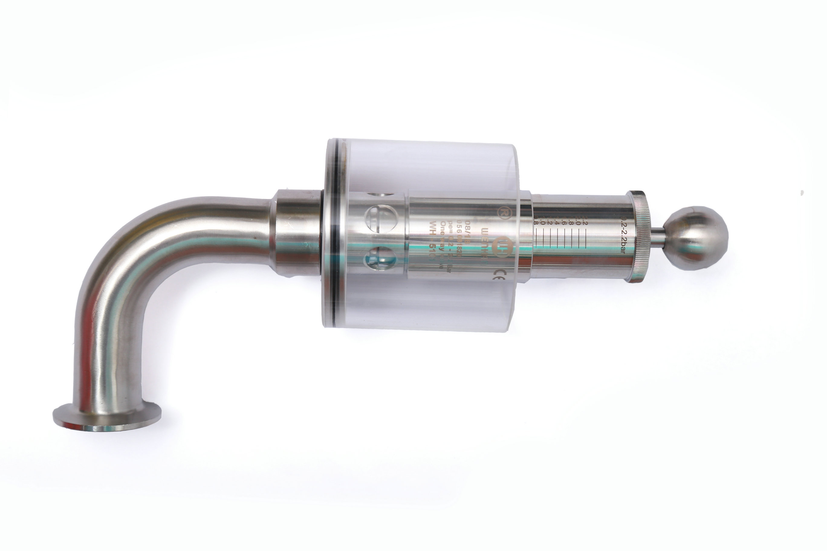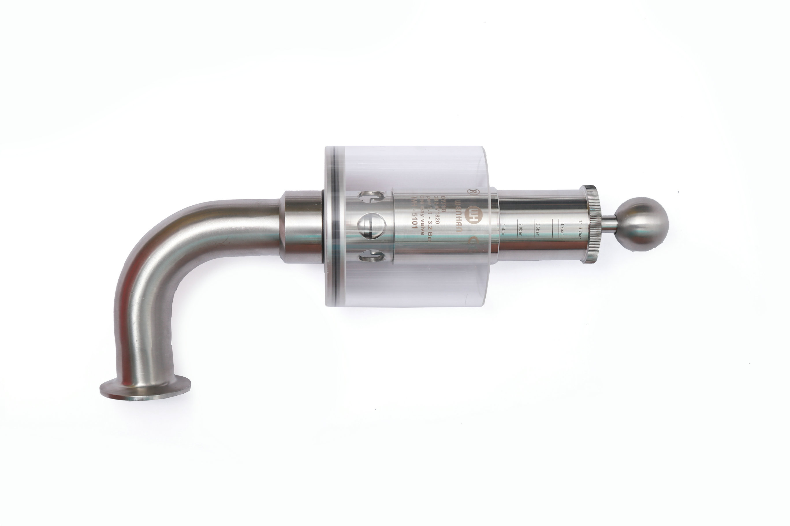 Wh-5101E 鏈接;快裝,卡箍。管徑;彎頭Φ32*1.5 . 內部設計壓力;由彈簧控制. 工作介質;氣體。手動式,旋鈕調節(jié)刻度壓力。